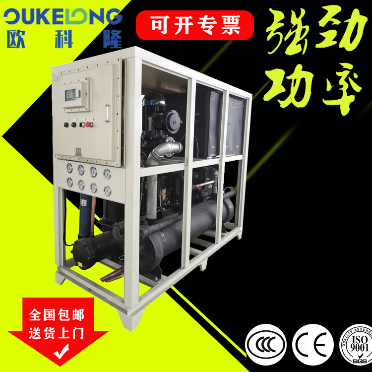 歐科隆水冷箱式防爆冷水機是歐科隆制冷打開市場的拳頭產(chǎn)品,采用隔爆、增安、本安、正壓、充油、充砂、無火花、澆封和氣密等多種防爆方式,使機組可以在易燃易爆場合使用。