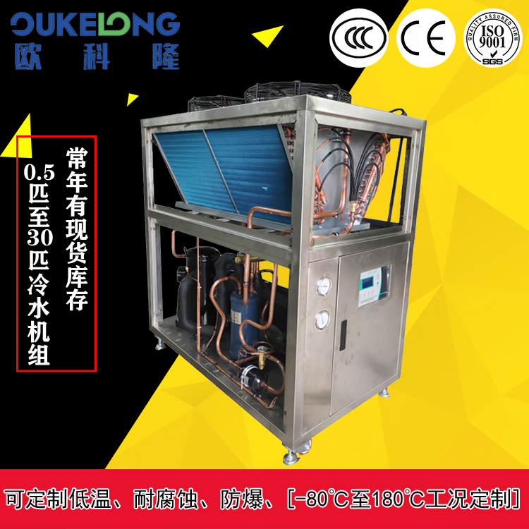 它具備一系列先進特點。采用知名品牌的高品質制冷壓縮機,效率比以往的壓縮機提升20 - 30%,性能強勁。數字微電腦溫度控制系統能精準把控冷卻液體溫度在 +3℃至 +50℃之間,保障機組穩定運行,節能效果顯著。高效的系統保護裝置為機組正常運行保駕護航,設有壓縮機延時啟動、過載保護、高低壓保護、壓縮機過熱保護等,使用起來省心省力。熱交換器采用特殊技術升級鈦材料,不僅制冷效果良好,還具有很強的耐腐蝕性,使用壽命大幅延長。