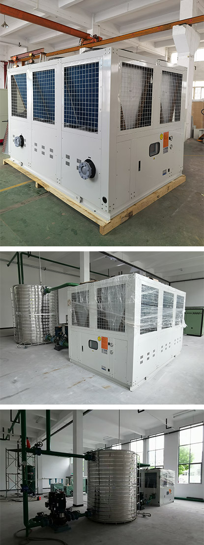 本案為東風(fēng)二汽公司風(fēng)冷螺桿式冷水機(jī)使用現(xiàn)場,主機(jī)裝機(jī)容量110匹,水箱容量5立方,配備內(nèi)外循環(huán)水泵兩用兩備。