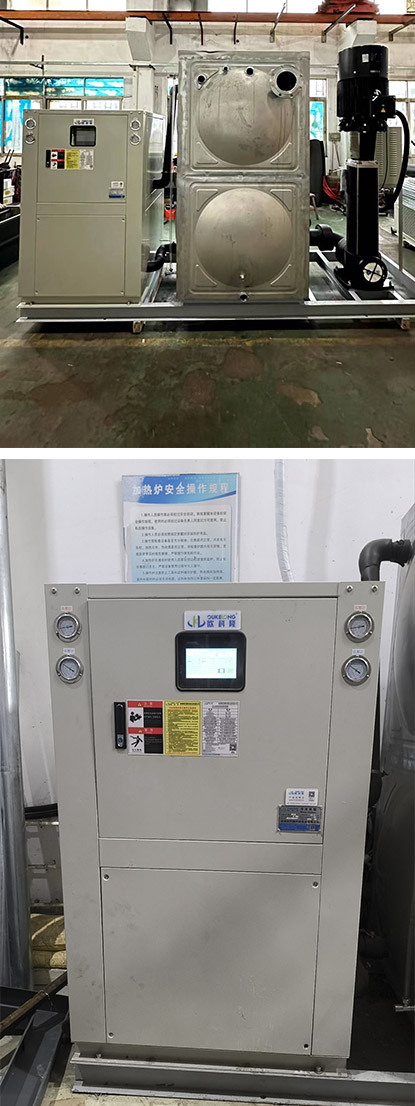 本案為東北大學實驗室,冷軋鋼實驗室使用的分體式冷水機,散熱外機放置在室外通風散熱良好處。內機和水箱水泵撬裝一體,帶撬裝1立方水箱,一臺45KW功率變頻水泵。水的壓力流量變頻可調。